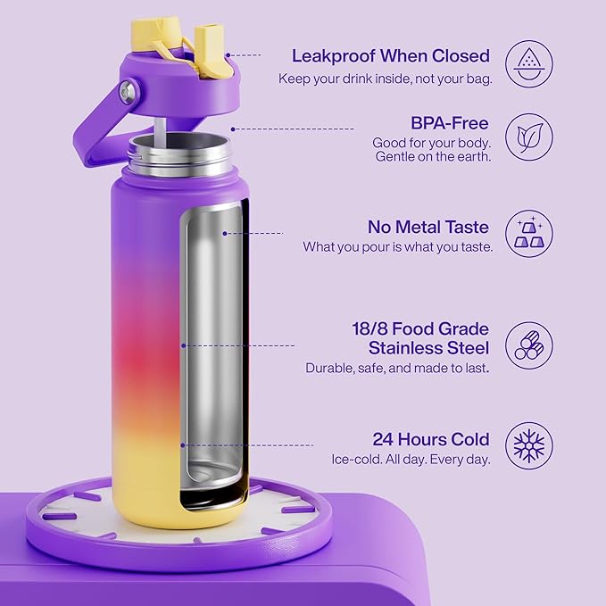 - Cold All Day Long: Our insulated water bottle keeps drinks cold for up to 24 hours. Double-wall stainless steel, zero condensation, just fresh hydration, wherever you go