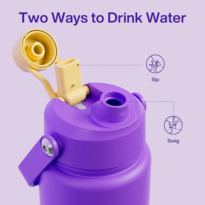 - Sip or Chug, Your Choice: Straw lid for sipping on the go and twist cap for deep hydration, all in one ENCOOL water bottle