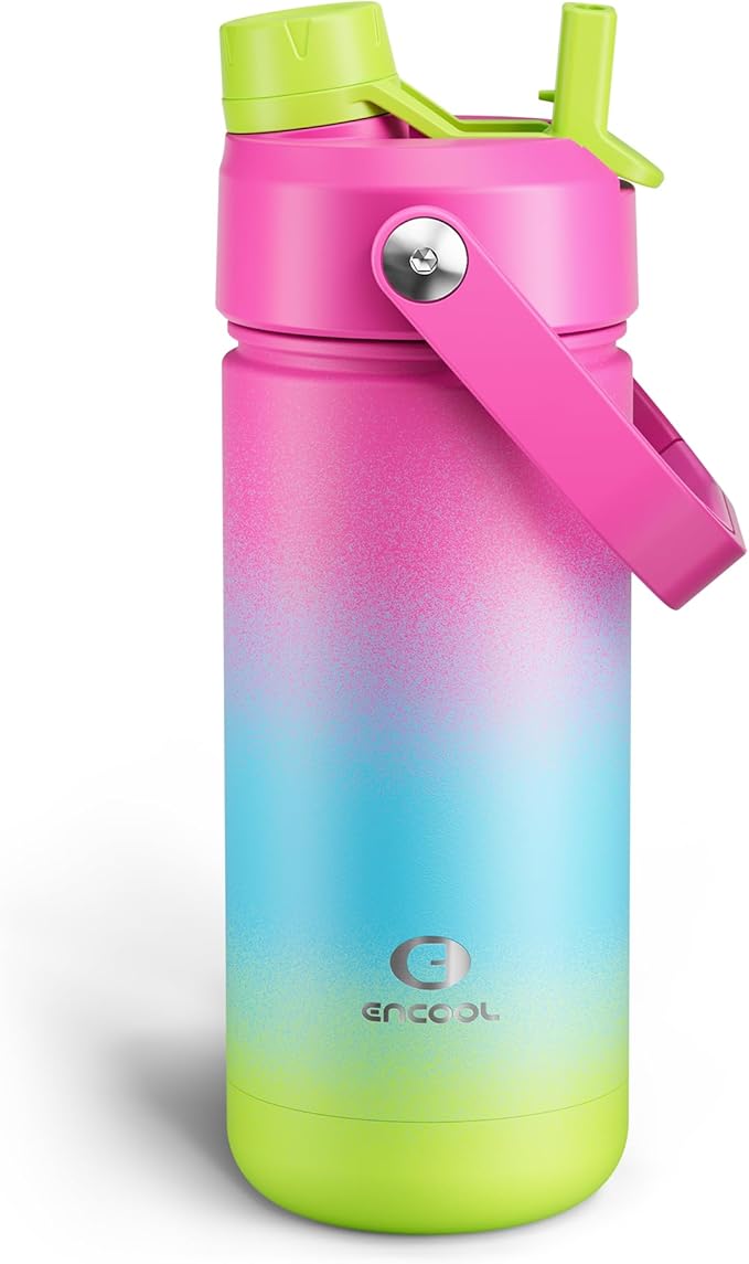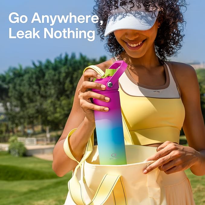 - Sip or Chug, Your Choice: Straw lid for sipping on the go and twist cap for deep hydration, all in one ENCOOL water bottle