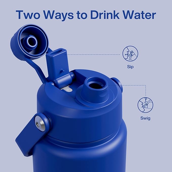 Insulated Water Bottle with Straw Stainless Steel Water Bottle, Leak-Proof, BPA-Free, Double Wall Vacuum Keeps Cold for 24 Hours for Sports, Travel, School (32 oz, Royal Blue)