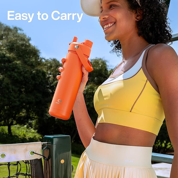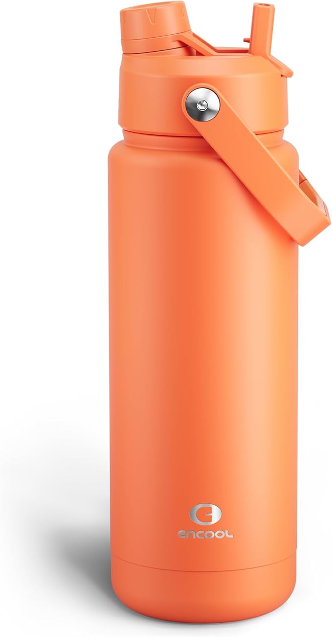 - Sip or Chug, Your Choice: Straw lid for sipping on the go and twist cap for deep hydration, all in one ENCOOL water bottle