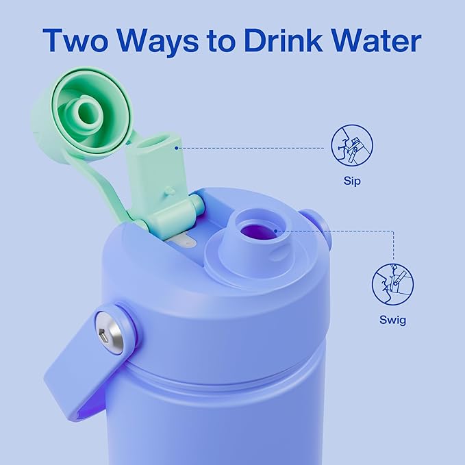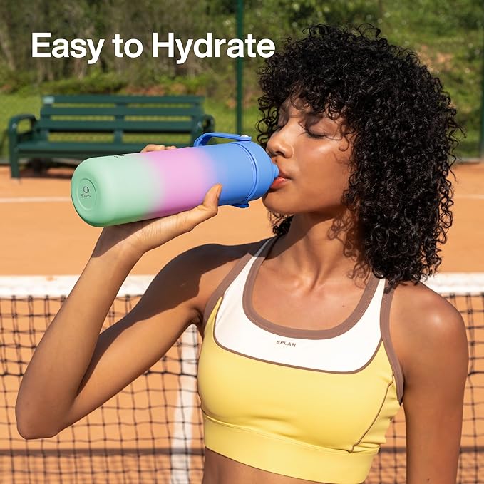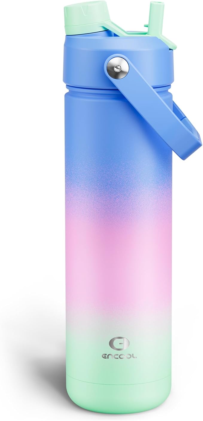 - Sip or Chug, Your Choice: Straw lid for sipping on the go and twist cap for deep hydration, all in one ENCOOL water bottle