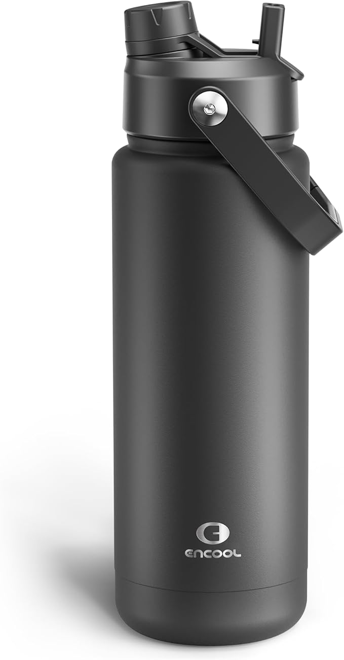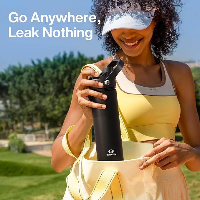 - Sip or Chug, Your Choice: Straw lid for sipping on the go and twist cap for deep hydration, all in one ENCOOL water bottle