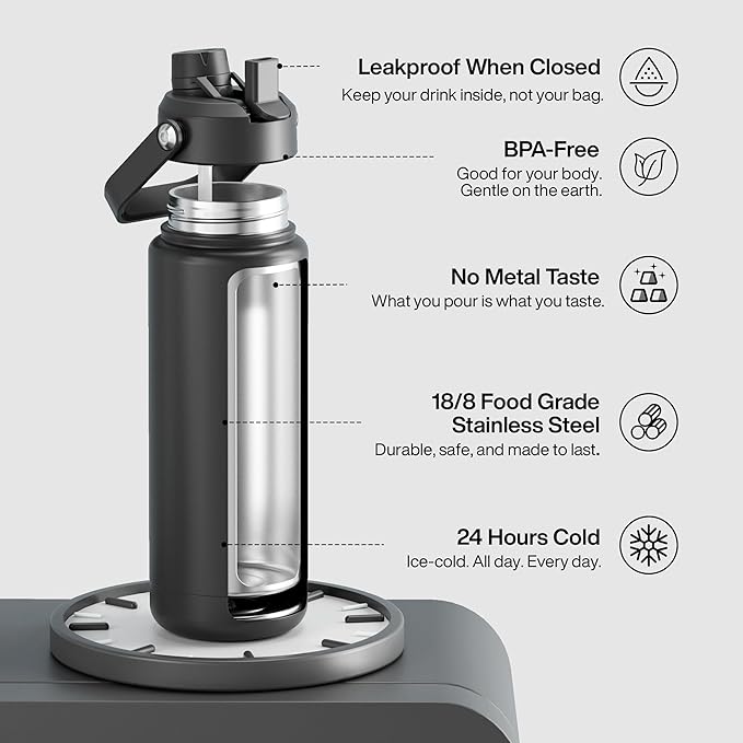 - Cold All Day Long: Our insulated water bottle keeps drinks cold for up to 24 hours. Double-wall stainless steel, zero condensation, just fresh hydration, wherever you go