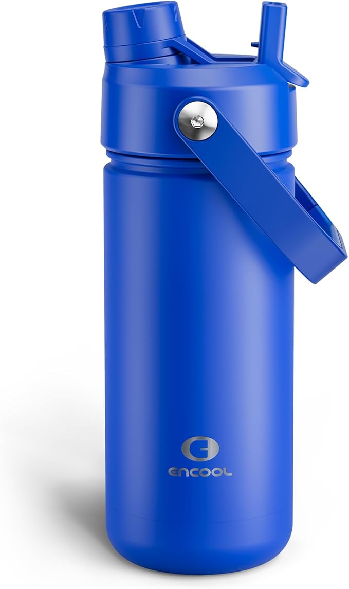 - Sip or Chug, Your Choice: Straw lid for sipping on the go and twist cap for deep hydration, all in one ENCOOL water bottle