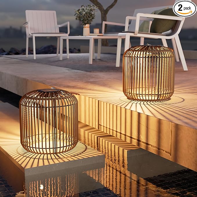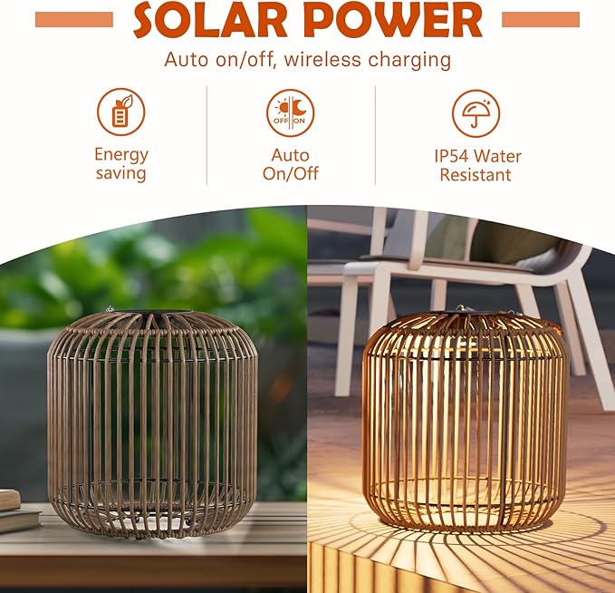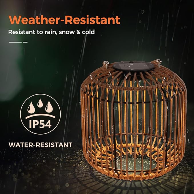 - LOW-MAINTENANCE: Constructed with a powder-coated steel and weather-resistant wicker, this lights withstands IP54-rated rain, wind, and sun exposure. Non-slip base ensures stability guarantee lasting beauty season after season