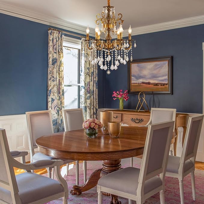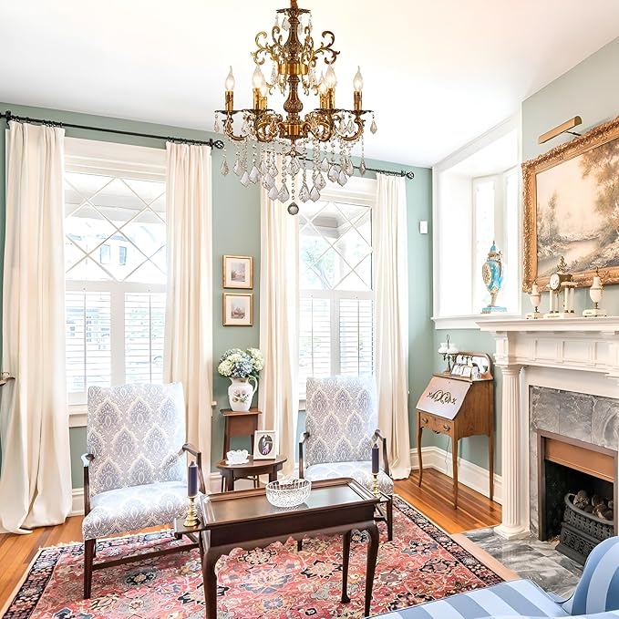 - This 6 Arms Crystal Candle Chandelier is a classic statement piecen with a beautiful antique gold finish, giving it a rich, old-world charm that complements classic, vintage, and even some transitional decors.