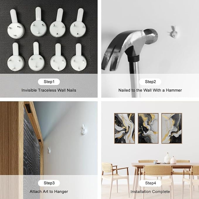 - 【Simple To Install】Each of these three modern gold art prints pieces measures 16x24inches. It comes with all the necessary accessories so it's simple and easy to install. Simply choose where you want to decorate, make sure it's level and aligned the way you want it, and then nail it down with non-marking nails.