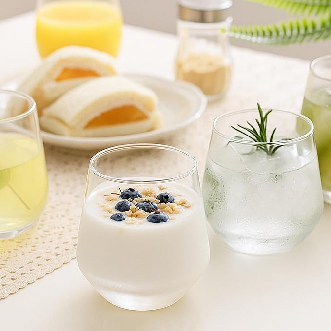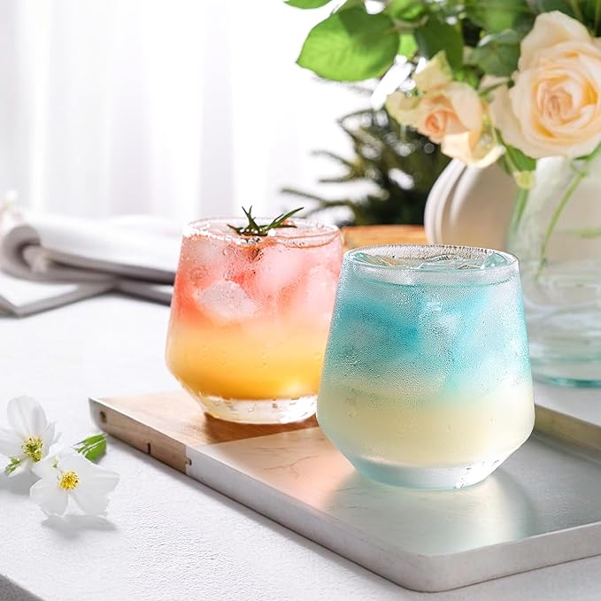 - 【Sturdy Base - Modern Design】: Stemless wine glasses with a thick bottom for stability, no fears of knocking it over. Modern style red wine glasses curve to perfectly fit in your hand. The exquisite and perfect wine glass tumbler allows you to fully enjoy your white wine glasses to the last sip. Perfect for daily use or entertaining your guests