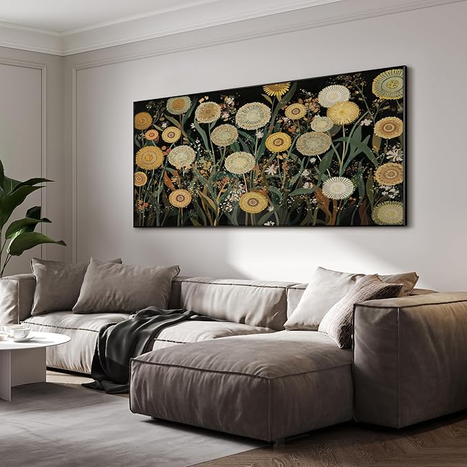 SIGNWIN 36"x72" Extra Large Framed Wall Art Whimsical Dandelion Field in Yellow and Green, Playful Botanical Print for Home Living Room Bedroom Decor (Frame Assembly Required)