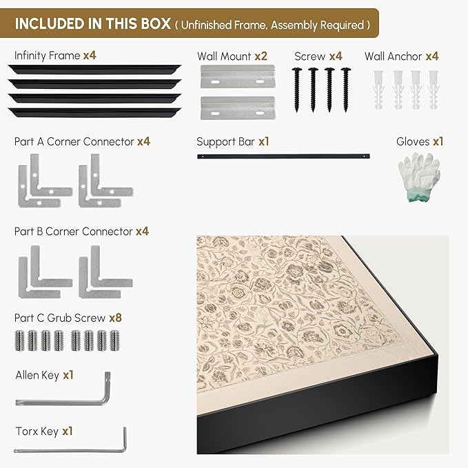 - Assembly Required: The artwork comes with the frame components unassembled. Don’t worry — setup is straightforward and tool-friendly. For best results and accurate alignment, we recommend two people to ensure a smooth assembly and a stable, secure wall mount.
