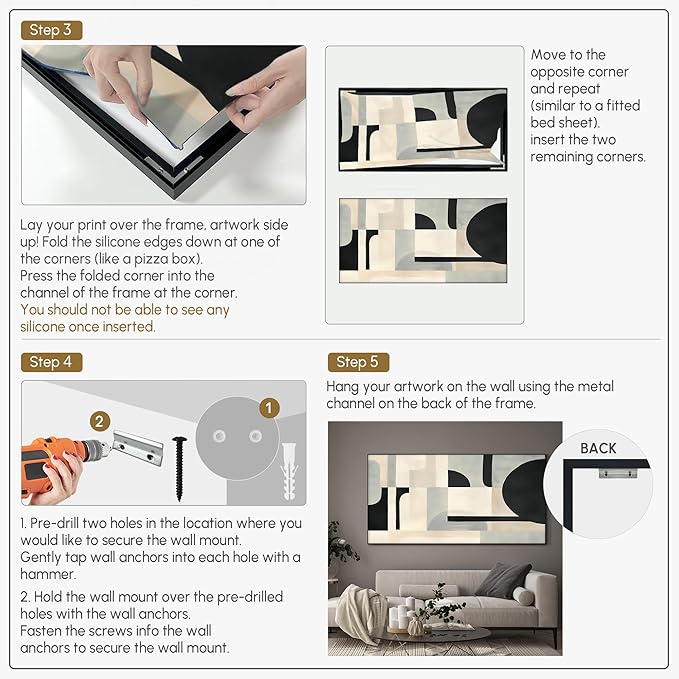 - Assembly Required: The artwork comes with the frame components unassembled. Don’t worry — setup is straightforward and tool-friendly. For best results and accurate alignment, we recommend two people to ensure a smooth assembly and a stable, secure wall mount.