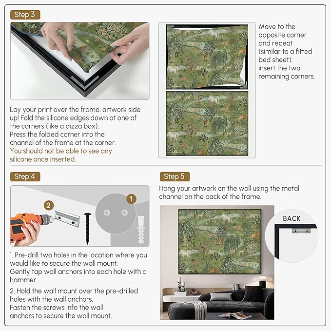 - Assembly Required: The artwork comes with the frame components unassembled. Don’t worry — setup is straightforward and tool-friendly. For best results and accurate alignment, we recommend two people to ensure a smooth assembly and a stable, secure wall mount.