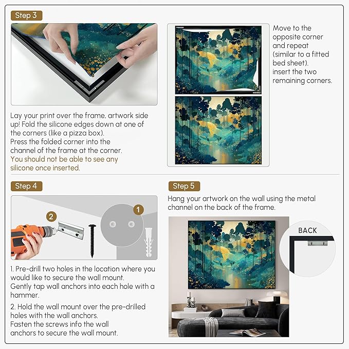 - Assembly Required: The artwork comes with the frame components unassembled. Don’t worry — setup is straightforward and tool-friendly. For best results and accurate alignment, we recommend two people to ensure a smooth assembly and a stable, secure wall mount.