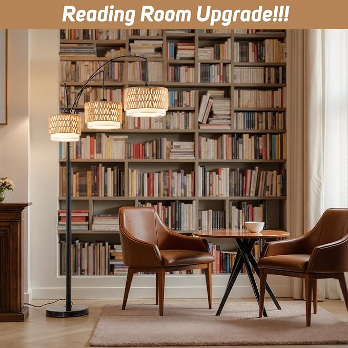 - 【Flexible Design】Our boho floor lamps for living room are designed to cater to any space with their 3 lamp floor lamp rattan structure. The adjustable arms provide focused lighting for a cozy reading corner or broad illumination for social gatherings. This coastal floor lamps for living room adapts to the multifunctionality of your home with refinement and ease