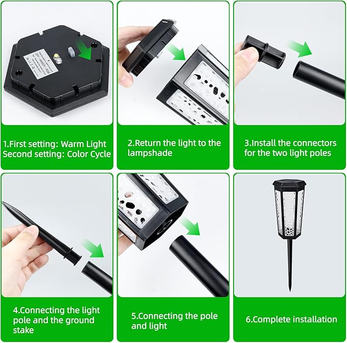 - 🌞【All-Weather Resistant & Easy to Install】: Our Solar Path Lights are made of high-quality, thickened ABS material, IP65 waterproof rating, ensuring resistance to all types of weather conditions, including rain, snow, frost and sleet. Their robust design and waterproof construction keep them functioning in heavy rain, offering reliable illumination. Installation is effortless; simply connect the stake, pole, and solar light, then insert the solar lights into the ground or lawn. Ensure these waterproof outdoor solar pathway lights are turned on before use and positioned where they can receive ample sunlight for optimal lighting.