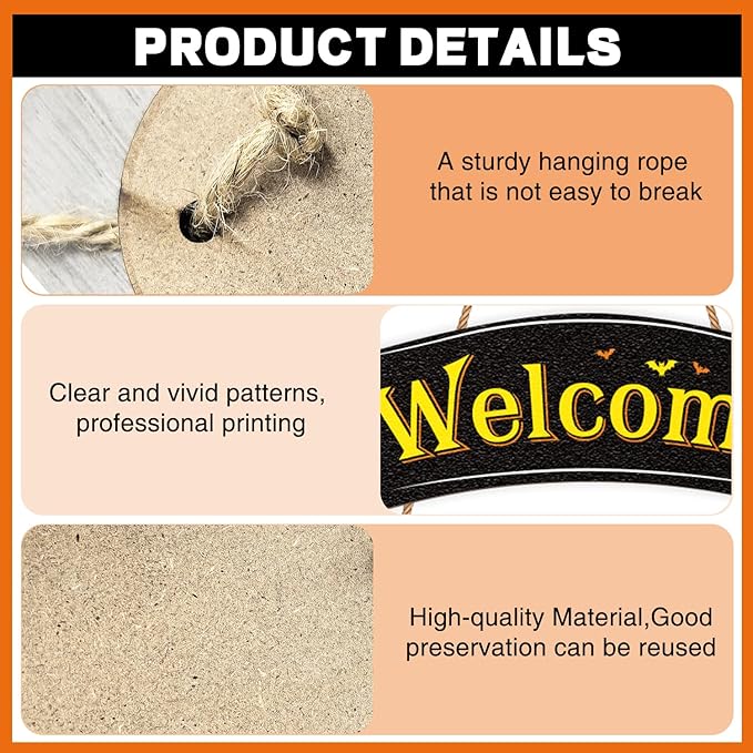 - easy installation: this halloween door decor comes with holes that you can put on the rope and hanging it on the door, window, wall, closet, etc. no other tools are required, and it provides you with a quick and easy decoration to your home or party.it perfect for happy halloween sign, halloween front door decor, welcome home sign, halloween door hanger, and so on