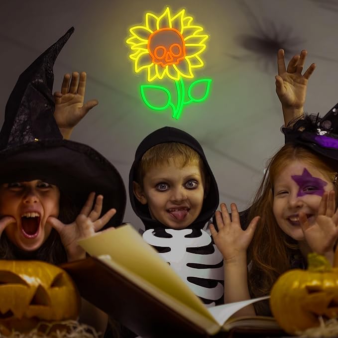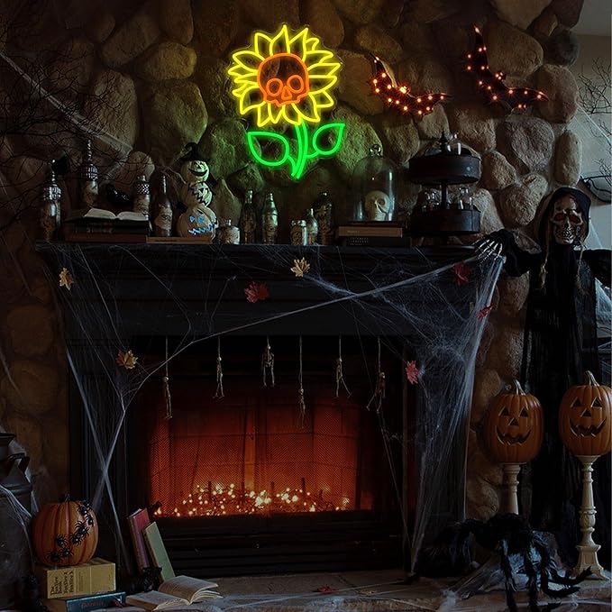 - Unique Fusion: The sunflower skull neon sign combines a vibrant sunflower with a mysterious and spooky skull in its center. This creative design creates a scary vibe while adding fun and novelty to your celebrations, breaking from the monotony of traditional Halloween decorations.