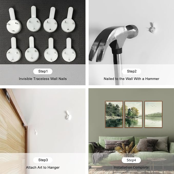 - [Easy to Hang] The size of this set of art green mountain forest painting is 16X24 inches (40X60cm). The package comes with a hanging kit inside,which can be hung up very easily.First,determine the installation position and then fix the nails.Just hang the frame on the nails
