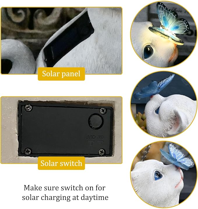 Cat Garden Figurines Outdoor Decor Solar Statue with LED Lights for Patio Lawn Yard Art Decoration Housewarming Garden Gift