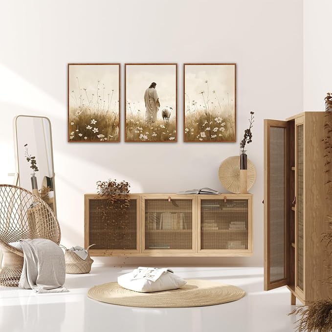 - 【Perfect Decoration]】This set of religious wall paintings featuring Jesus and sheep is a perfect Christian decoration.Whether it's your living room,bedroom,dining room,gallery,kitchen,office or any other place,it can blend with any style and bring more warmth to your space