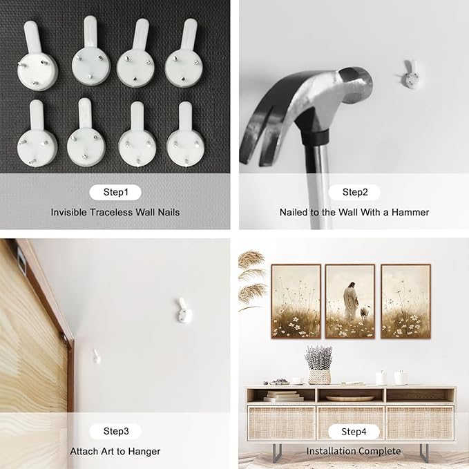 - 【Easy To Hang】This set of light-colored Christian printed wall paintings measures 16x24 inches(60x40 cm) and is easy to hang.Just fix the nails in the accessories in the appropriate positions and then hang the frame.The installation process only takes a few minutes and is very convenient