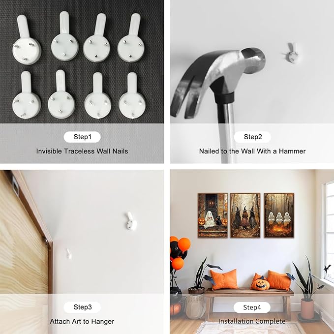 - 【Simple To Install】Each of these three horror ghost witch art prints pieces measures 16x24inches. It comes with all the necessary accessories so it's simple and easy to install. Simply choose where you want to decorate, make sure it's level and aligned the way you want it, and then nail it down with non-marking nails.