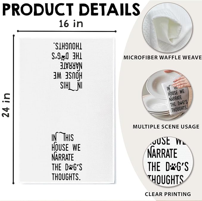 Dog Kitchen Towel, Waffle Weave Microfiber Dish Towel, in This House We Narrate The Dog's Thoughts, Funny Pet Decor Gift for Dog Moms, Animal Lovers