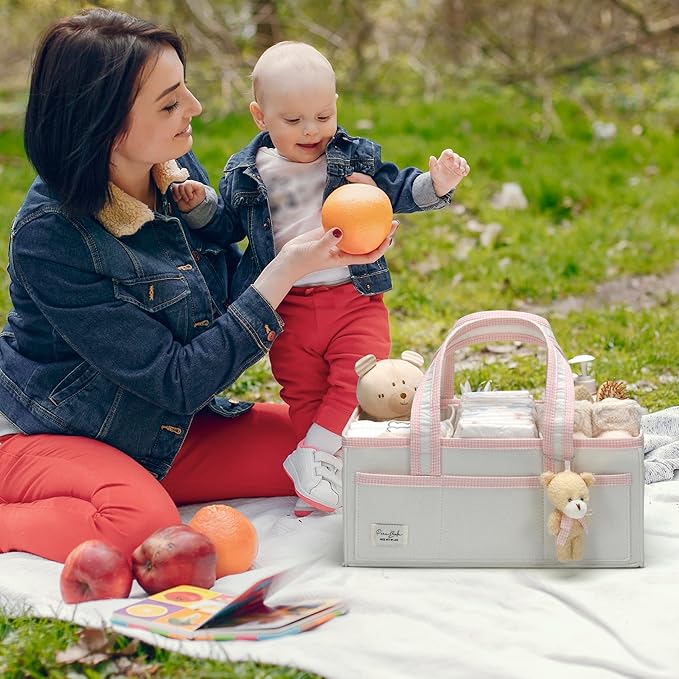 - LIGHTWEIGHT & MULTI-PURPOSE: This baby diaper caddy organizer with handle is perfect for nursery storage, car caddy, or bedside diaper changing station. Store diapers, wipes, breast pump, baby bath items, or toys—ideal for travel and everyday use as baby room organizer and storage