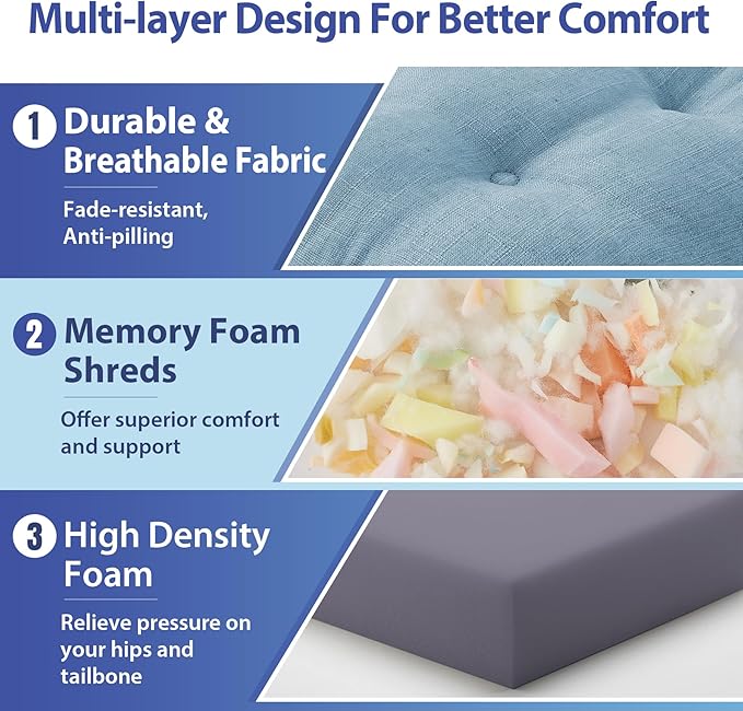 - 【Premium Memory Foam Support】: Designed with high-density memory foam for long-lasting support and comfort, our dining chair cushion offers superior comfort and support, relieving pressure on your hips and tailbone during extended seating