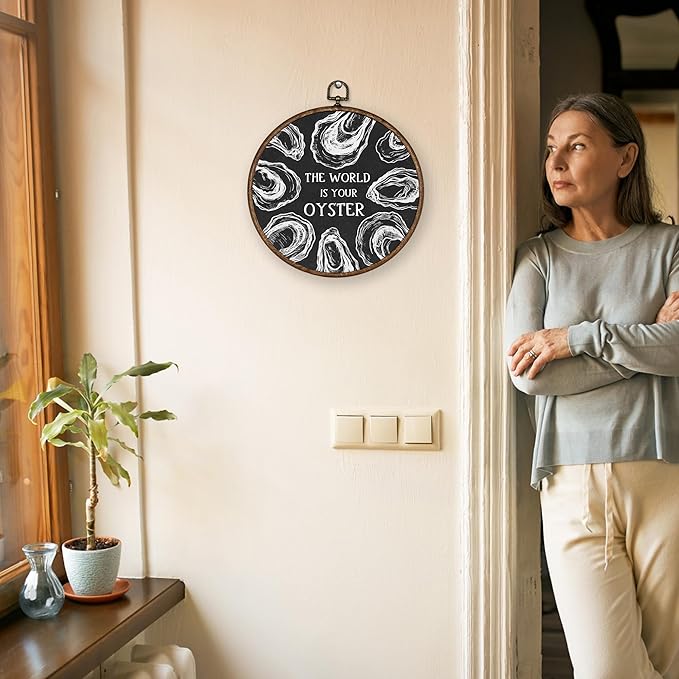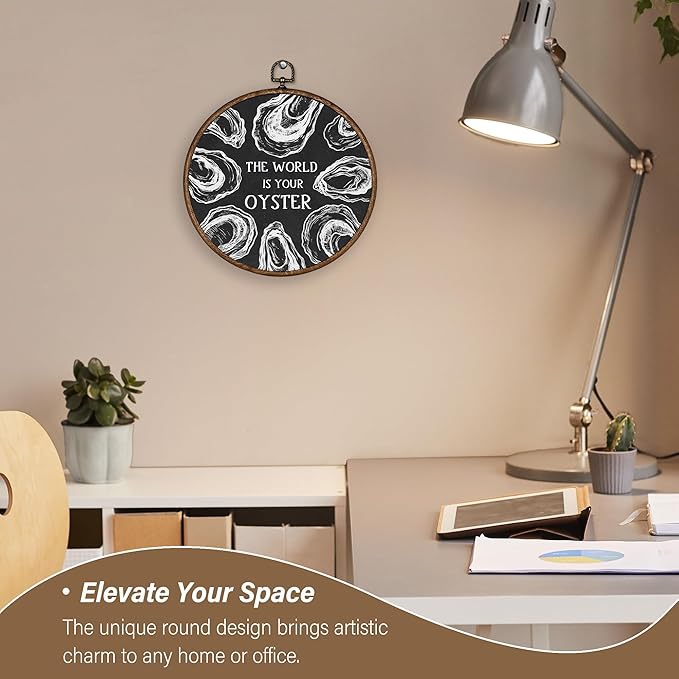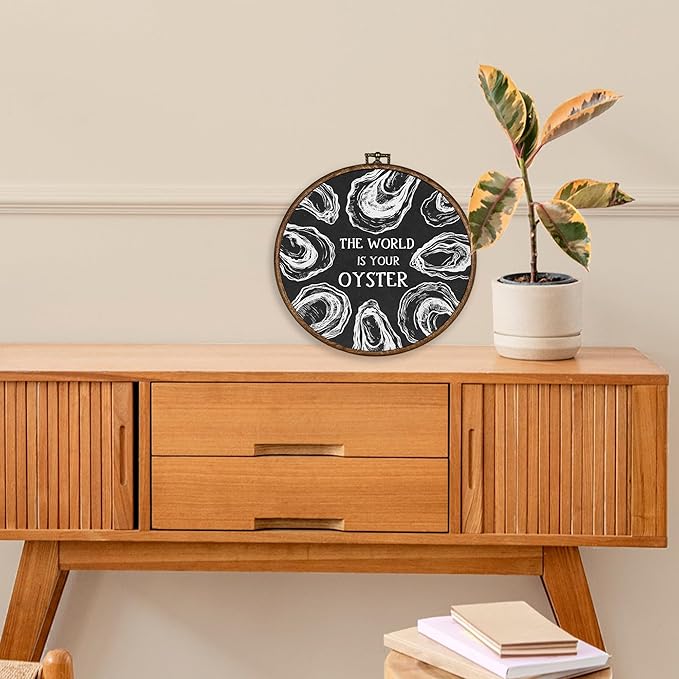 XBBMGG Black Vintage Oyster Wall Art Decor, Beach Nautical Round Wall Hanging Decor, Retro Ocean The World Is Your Oyster Framed Canvas Prints for Home Bedroom Living Room Decorations, 10x10inch