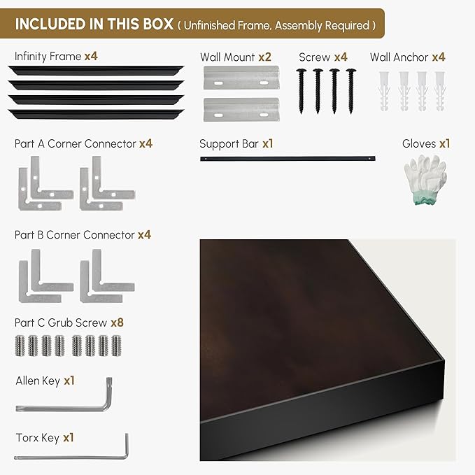 - Assembly Required: The artwork comes with the frame components unassembled. Don¡¯t worry - setup is straightforward and tool-friendly. For best results and accurate alignment, we recommend two people to ensure a smooth assembly and a stable, secure wall mount.