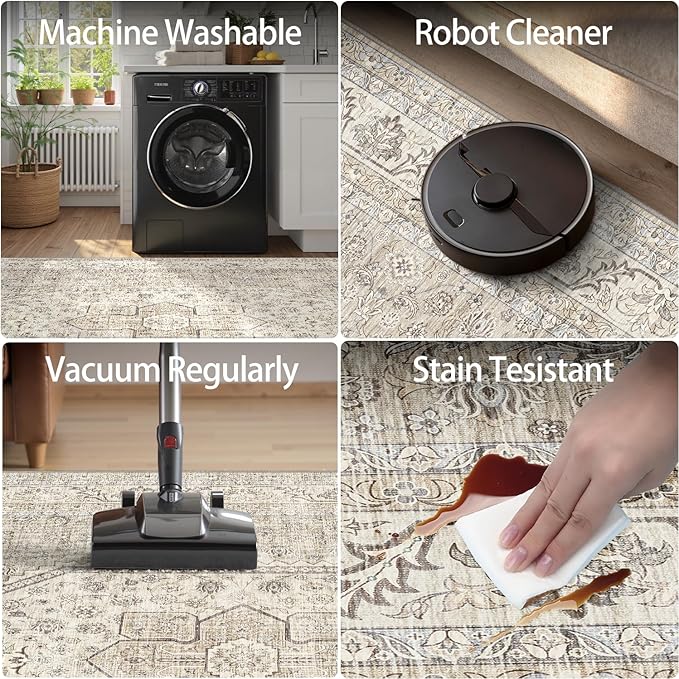 - 【Effortless Machine Washable Area Rug】Keep your 8x10 brown and beige washable rug fresh with zero hassle! perfect as a soft low pile large washable rug for living room, dining room under table rug, or bedroom floor mat, it withstands daily messes. simply vacuum regularly or toss in washing machine—air-dries rapidly while resisting fading. durable for everyday use-machine washable rug 8x10 bedroom