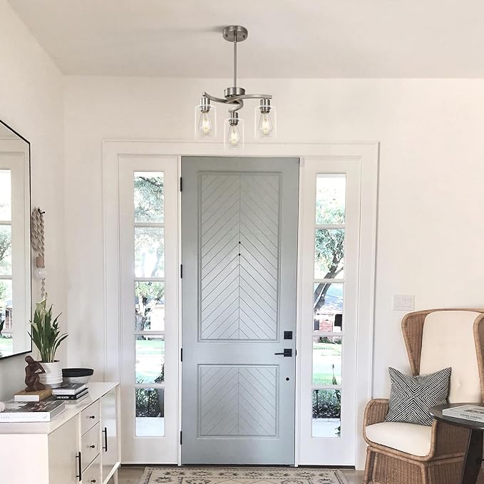 - 💡 Flexible Combination of Diverse Light Sources:Brushed nickel chandeliers for dining room is equipped with three E26 standard lamp sockets, compatible with incandescent bulbs, LED bulbs, CFL bulbs, and halogen bulbs (bulbs not included), and supports dimming functionality (requires dimmable bulbs and switches). The lighting ambiance can be freely adjusted from warm and comfortable to bright and white, meeting the needs of different scenarios.