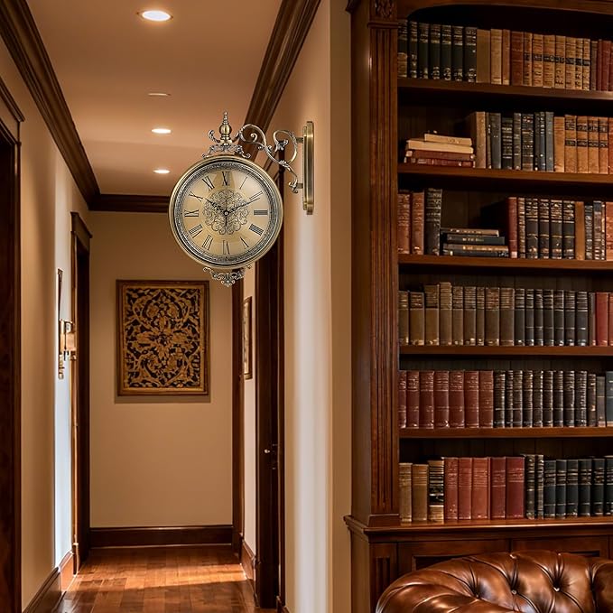 - 🎯 [Double-Sided Vintage Design with Roman & Arabic Numerals] Admire classic elegance from any viewpoint. Our unique double sided wall clock displays sophisticated Roman numerals on one side and clear Arabic numerals on the other. This antique stationary design offers dual visibility in a stunning vintage package, making it a captivating hanging clock for your space.