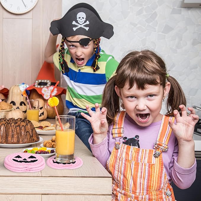 - Funny Pumpkin Design: Our Halloween themed coasters are designed with funny pumpkin expressions, mainly colored in pink, cute and delicate, will nicely increase festive atmosphere