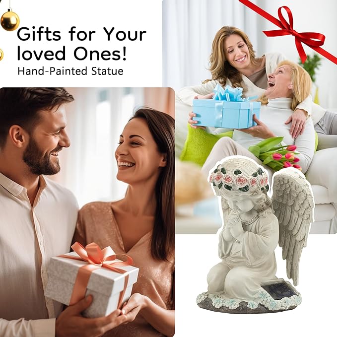 - 🕯【Heavenly Guardian with Gentle Glow】This 8.07" praying angel statue emits a soft solar-powered light from clasped hands, casting a serene glow over gardens or memorials. Auto dusk-to-dawn operation brings comfort through the night – no wiring needed, only faith.