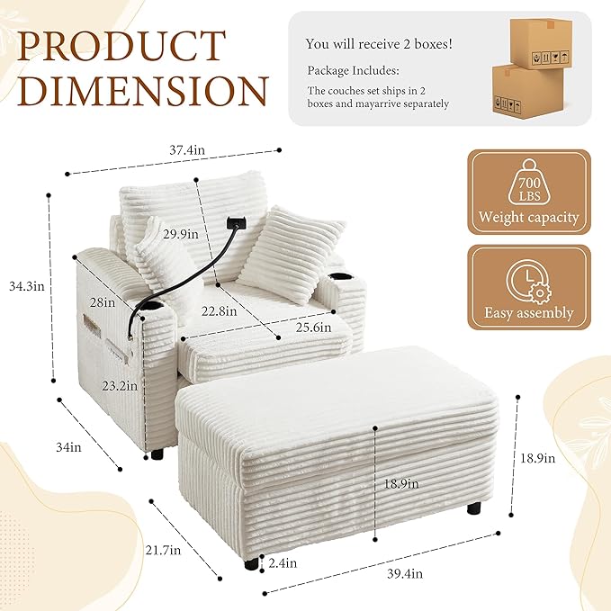 - Versatile Movable Ottoman — Lounge Chair Indoor with Hidden Storage: The movable ottoman lets you customize your comfort—use it as a footrest, a chaise lounge, or even a small table. Plus, it features hidden storage, so your essentials stay organized and close by, ideal for any lounge chair indoor setup.