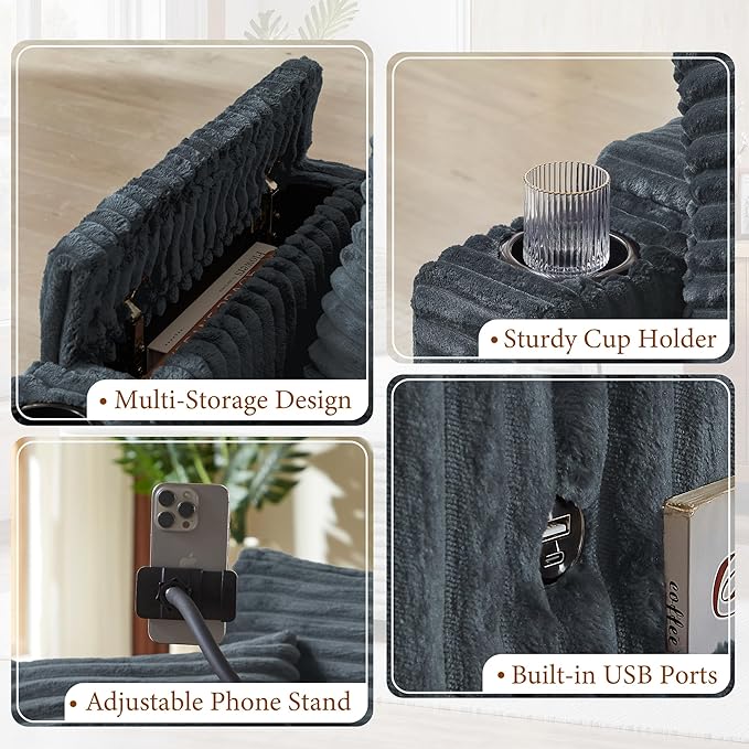 - Thoughtful Features for Convenience — Phone Holder and USB Port: Stay connected and hands-free with a built-in phone holder and one USB port, letting you charge your devices effortlessly while you relax. This accent chair truly supports your modern lifestyle needs without interrupting your leisure time.