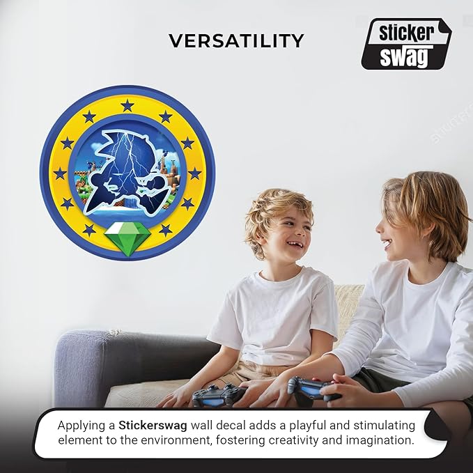 Speed Hero Wall Decal – Removable Vinyl Wall Art with Chaos Emerald Design – Gaming Room, Bedroom & Playroom Decor (Electric Hero)